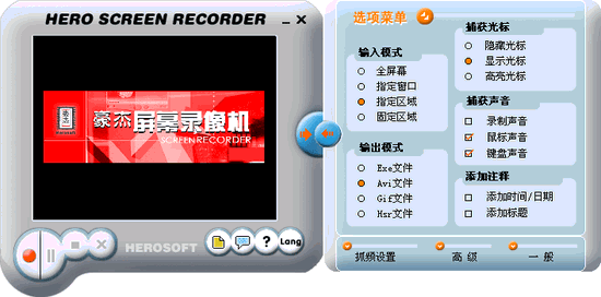 “課件制作”的全新突破,跟蹤錄制屏幕上所有區(qū)域的動作和鍵盤、鼠標的聲音,可保存為EXE,AVI,GIF和HSR格式,編碼速度快,高保真,也常被應用進行計算機監(jiān)控管理。 錄制/保存/播放功能 可以錄制全屏幕,活動窗口,固定區(qū)域,指定區(qū)域的屏幕動作,包括鼠標的聲音和鍵盤的聲音,然后保存為EXE,AVI,GIF,HSR四種格式,保存完后可以進行播放。后期編輯功能 可以對HSR格式的文件進行后期的編輯,編輯內(nèi)容包括對文件每一幀添加圖板說明,刪除幀,添加聲音,合并兩個以上的HSR文件。設置功能 可以在錄制過程中設置是否要添加時間顯示,添加標題,添加圖板說明,鼠標是否顯示以及顯示形式,對視音頻編碼的設置,快捷鍵設置等。浮動窗口的切換 可以在原始窗口和浮動窗口之間進行切換,方便操作。