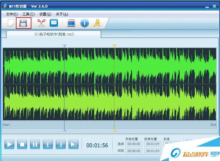 只需要將你的其他格式文件用MP3剪切器打開,選擇好你想剪切的MP3起始位置和結(jié)束位置,點擊保存,立刻搞定!