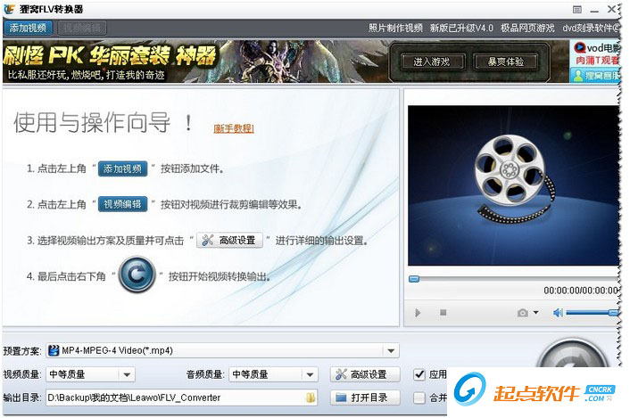 貍窩FLV視頻轉換器不單可以轉換多種音視頻格式功能,貍窩flv轉換器同時也是一款簡單易用而且功能強大的音視頻編輯器!利用FLV視頻轉換器的視頻編輯功能,DIY你自己拍攝或收集的視頻或小電影,讓它獨一無二,特色十足。在視頻轉換設置中,您可以對輸入的視頻文件進行可視化編輯,例如:裁剪視頻,截取部分視頻轉換,不同視頻合并成一個文件輸出,調節(jié)視頻亮度,對比度等。【軟件特點】