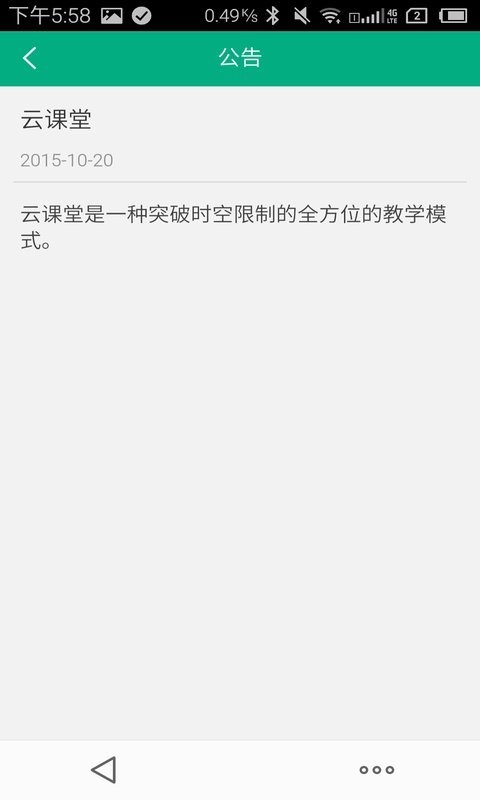 “云課堂”教師版是一類面向教育的互聯(lián)網(wǎng)服務(wù),是一種真正完全突破時空限制的全方位互動性學(xué)習(xí)模式。將已有的教育模式、內(nèi)容、方法、體系進行重新的設(shè)計,老師的教學(xué)設(shè)計被融入到課程中,基于傳統(tǒng)教學(xué)又超越傳統(tǒng)上課的上課方式,帶來了前所未有的體驗。只需一個賬號,你在電腦、iPad、手機上的活動記錄就可實時同步更新。使用者只需要通過"云課堂"教師版平臺進行簡單易用的操作,便可快速高效地與學(xué)生分享教學(xué)課件,通過"簽到"功能有效的得知學(xué)生的出勤率,通過"測驗"功能及時掌握學(xué)生的學(xué)習(xí)情況,實現(xiàn)了真正的教學(xué)互動。【更新日志】
