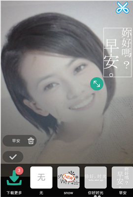 如圖,我隨機(jī)選擇了【文字】,在照片上添加了poco美人相機(jī)里的已有文字素材,看看,是不是很easy呢。