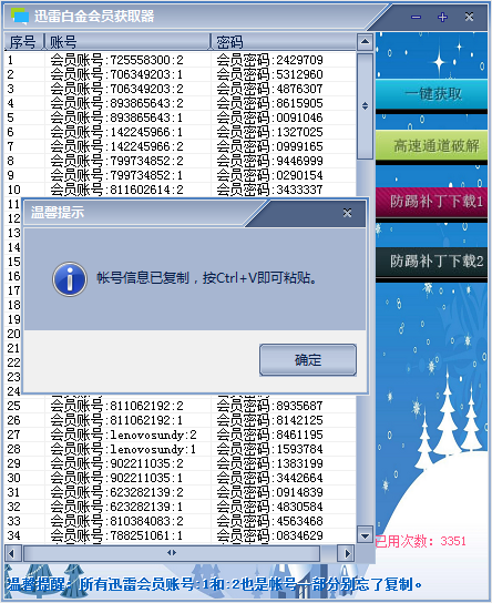 迅雷白金會員獲取器是一款綠色免費的最新版的專業(yè)獲取會員VIP賬號的工具。該軟件可一鍵獲取最新迅雷白金會員賬號。