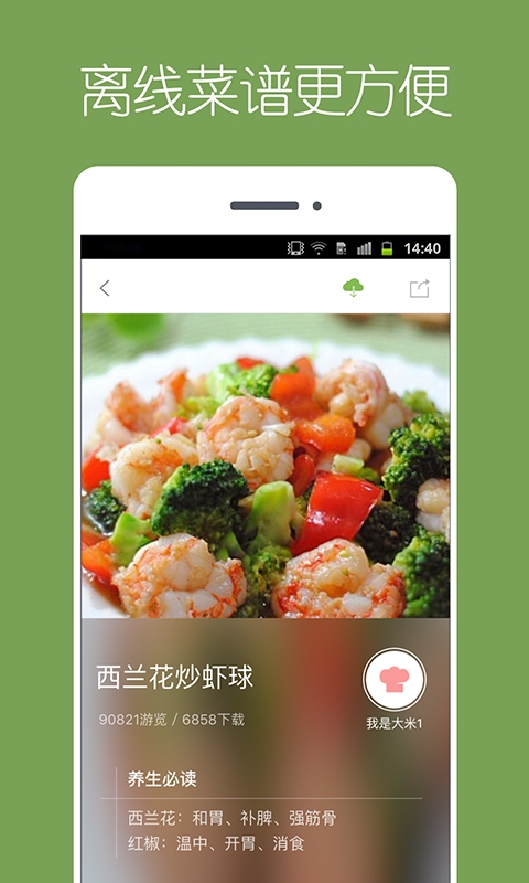 (1)四十萬道菜譜免費使用!(2)圖文并茂,分步詳解,還有貼心小竅門!