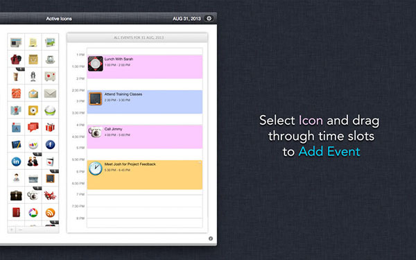 Active Icons Mac版是一款功能強(qiáng)大的日程管理軟件,特定的圖標(biāo)來(lái)非常直觀(guān)的展示用戶(hù)每天的生活,同時(shí)你也可以安排自己的日程,快速和有效地建立一個(gè)完美的日常計(jì)劃,為您的日常工作和活動(dòng)帶來(lái)了極大的便利。