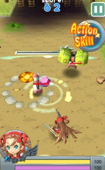 1、玩家可以自由移動(dòng)女孩,通過觸屏射擊來消滅各種萌萌的敵人;2、還得躲避各種機(jī)關(guān)陷阱喲!