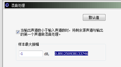 點(diǎn)擊圖中“混音選項(xiàng)”即可進(jìn)入混音設(shè)置,如下圖所示:其中樣本最大振幅用于規(guī)范化音頻樣本的最大振幅值,其絕對(duì)值在 0---1 之間。