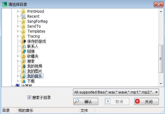 支持Wave、Aif、Snd、Mp3、Ogg、Wma、Flac、Ape、Caf(alac)、M4a(msaac)、3Gp(msaac)、Tta、Mpc。