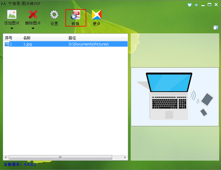 2、圖片加好后,點(diǎn)擊轉(zhuǎn)換按鈕生成pdf文件