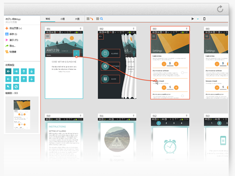 1.創(chuàng)建交互,拖一拖將設計圖導入,在工作頁上拖動鼠標創(chuàng)建交互區(qū)域,然后鏈接到其它頁面,即可生成交互。