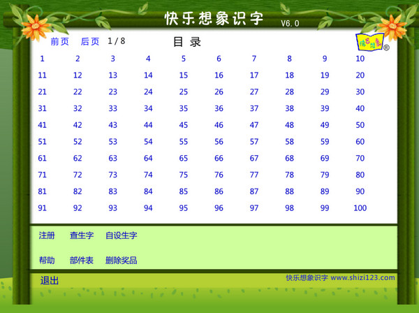 快樂想象識字法為了幫助人們克服識字的困難,就仿古人的這個思路,充分發(fā)揮漢字“以形表義”、極富聯(lián)想性的獨特優(yōu)勢(這是世界上其它現(xiàn)行文字都不具有的),但又不拘泥于六書的解釋和造字的本義,而是緊扣現(xiàn)行的字形和字義,用四歲左右兒童都能聽懂的話語和事理,將三千多個常用漢字中每個字的形義音三者間的關(guān)系進行多方聯(lián)想、趣味想象,使三者重新合情合理地聯(lián)系起來,這樣幾乎每個漢字都成為一個生動的情景,或是一個有趣的小故事,以形象思維為主的兒童看著新奇美妙、賞心悅目,心理上一下子就親近和接受了漢字,并在思維里建立起牢固的聯(lián)系。【軟件特色】