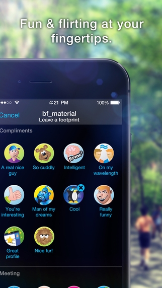有時很難知道首先該如何開口。我們眾多定制的腳印,讓你可以瞬間發(fā)送一個可愛的眨眼或者聰明的點頭,使得初次聯(lián)系既有趣又容易。