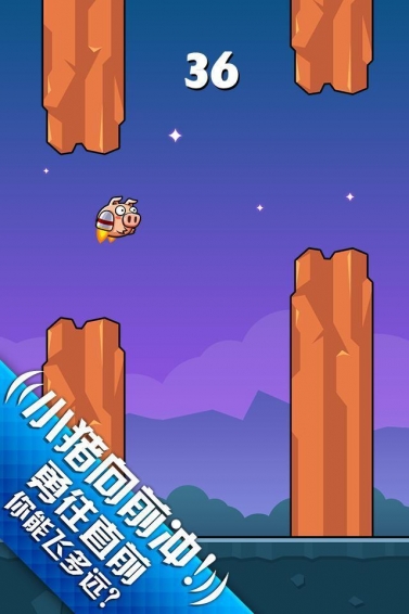 豬豬飛翔手機(jī)版是一款難度不小的飛行游戲,游戲中的小豬豬要飛回家去,玩家需要幫助他穿過(guò)山峰間的縫隙。其中點(diǎn)擊屏幕可以讓小豬向上跳躍一小段距離,如果不動(dòng)則小豬會(huì)一直向下掉,為了不碰到巖石,玩家需要掌控其中的度,過(guò)的山峰越多則分?jǐn)?shù)越高。