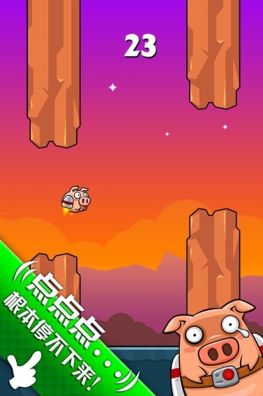 豬豬飛翔:來(lái)自星星的你! 來(lái)自星星的豬! 肚叫獸要回家,趕緊幫叫獸飛躍重重險(xiǎn)阻,回到星星故鄉(xiāng)吧! 超級(jí)好玩的飛行冒險(xiǎn)休閑游戲,簡(jiǎn)單又刺激! 無(wú)數(shù)人在玩,你不來(lái)試試? 挑戰(zhàn)下你的手指,挑戰(zhàn)下你的判斷力! 和朋友們較量下吧!贏取炸雞啤酒!