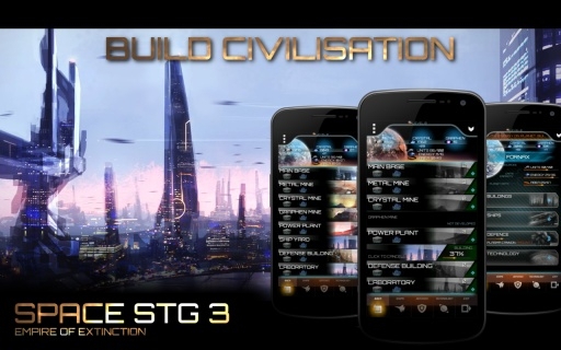 空間射擊3:消逝的帝國 (Space STG 3: Empire of extinction)是一款星際策略游戲,游戲中,玩家需要征服銀河系,建立一個強(qiáng)大的星際帝國。在行星上建造不同的飛船,探索未知的外太空,尋找合適的行星并建立殖民地和開采資源。發(fā)展你的基地,建立一個造船廠,實驗室和其他建筑物。學(xué)習(xí)新技術(shù),將使您創(chuàng)造更先進(jìn)的機(jī)器。建立一個強(qiáng)大的太空艦隊與其他玩家參加太空戰(zhàn)。