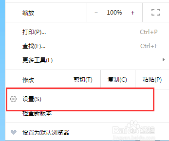 在下拉菜單中選擇設(shè)置菜單,如下圖所示