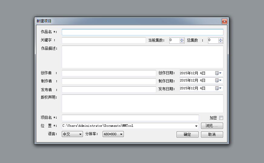 一、點(diǎn)擊菜單欄“工程—新建”填寫(xiě)作品相關(guān)信息,選擇目標(biāo)分辨率;