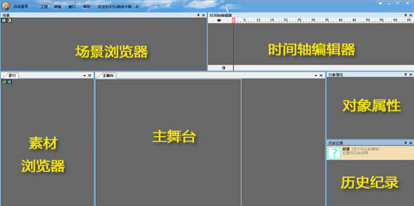 二、軟件制作界面,默認(rèn)分為6個(gè)區(qū)域;