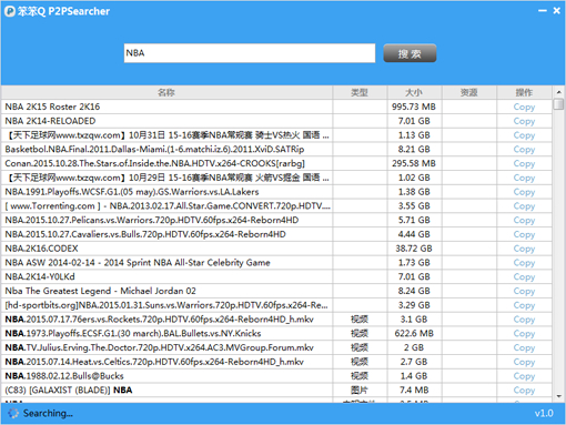 笨笨Q P2PSearcher是一款資源豐富的種子搜索神器,這款種子搜索器可以幫助用戶快速搜索到所有種子資源,可根據(jù)關(guān)鍵字搜索種子鏈接,資源搜索結(jié)果最豐富,而且點(diǎn)擊copy就能下載觀看,支持多種下載工具,即使在封殺P2P網(wǎng)絡(luò)環(huán)境下仍能下載到資源。只有你想不到,沒(méi)有你搜不到!【軟件功能特點(diǎn)】