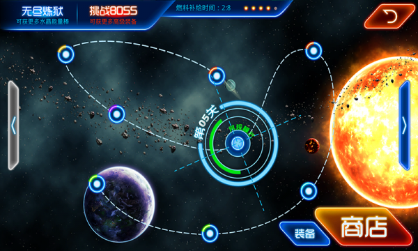 《激戰(zhàn)銀河》作為一款輕度休閑的飛行射擊類手機(jī)游戲,操縱簡(jiǎn)單,玩家只需要用搖桿操控飛機(jī),躲避敵人攻擊。而飛船的主武器,副武器是自動(dòng)進(jìn)行瞄準(zhǔn)射擊。 玩家只需要選擇最佳角度對(duì)敵人飛船進(jìn)行攻擊就可以。10種飛機(jī)機(jī)身,10種主武器,10種副武器,20種特殊武器芯片,根據(jù)玩家的感覺(jué)進(jìn)行自由搭配,表現(xiàn)出不同的防守,攻擊作戰(zhàn)能力。 飛船機(jī)身,主武器都有各自的技能大招。玩家擊毀敵人飛船可以隨機(jī)獲得水晶能量,這些水晶能量在戰(zhàn)斗中可以開(kāi)啟飛船和主武器的各種大招技能。這些技能有的是防守型的,例如防護(hù)罩,有的是攻擊型的,給敵人飛船以致命的打擊。水晶能量在戰(zhàn)斗之外,可以升級(jí)武器裝備,操縱好飛船,盡可能多的收集水晶能量升級(jí)武器。伙伴們,讓我們駕駛著強(qiáng)大的戰(zhàn)斗飛船,驅(qū)逐來(lái)犯的外星人吧。