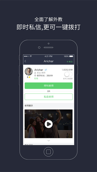 4、實時上線提醒和關(guān)注添加:喜歡的外教上線后及時消息推送提醒,并可將中意外教添加至關(guān)注列表,方便快速鎖定。