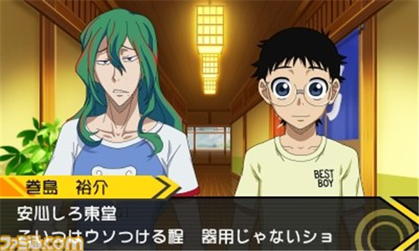 ADV(劇情)部分ADV部分包括游戲劇情故事和小故事部分。以高中校際比賽結(jié)束后的夏天為故事舞臺(tái)。小故事有總北高中視角、箱根學(xué)園視覺,當(dāng)然也有若是兩邊的小故事都忽略的話就不能繼續(xù)劇情的情況,有1周目不能看到的小故事,還有少不了大量的劇情語音。另外,在ADV部分中會(huì)有選項(xiàng)(2、3項(xiàng))選擇,根據(jù)不同的選項(xiàng),劇情的展開會(huì)有相應(yīng)的變化,各選手的參數(shù)也會(huì)隨之變化。