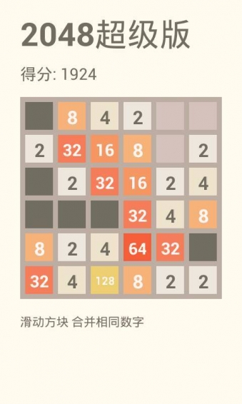 《2048超級版》是一款有趣的數(shù)學(xué)休閑益智游戲。游戲方法是把方塊合并,合并的辦法是其中一個(gè)數(shù)字靠邊的時(shí)候,將另一個(gè)數(shù)字向四個(gè)方向的墻推過去。2和2可以合并成4,4和4合并成8,在到無窮大。2048超級版比原始2048更有趣,更好玩,更有挑戰(zhàn)性。趕快來獲得更大的數(shù)字和更多的分?jǐn)?shù)吧。