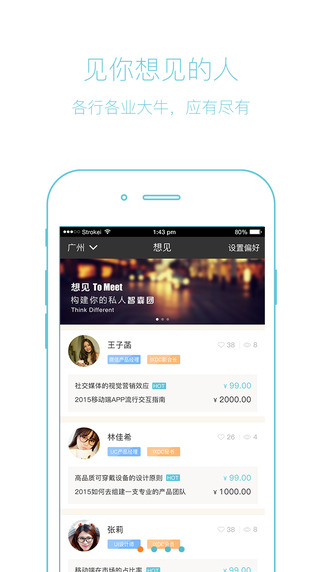在這個世界上,我們每天都面臨各種問題不知道問誰。想見打通了普通人和行業(yè)大牛的紐帶,當你遇到問題的時候,你可以通過“想見”找到Ta,在“想見”的牽線搭橋之下,雙方可以進行面對面更深入的溝通分享彼此的知識、經(jīng)驗和見解。【軟件特點】