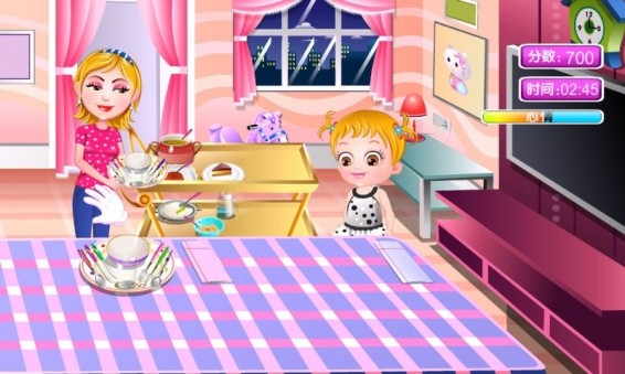 今天,小寶貝的媽媽來教你如何使用正確的用餐禮儀。和可愛的小寶貝一起聽媽媽講禮儀,爭取得到媽媽的贊賞。進入游戲后按照提示首先用餐前要拿走不需要的東西并清理餐桌,把盤子和餐具在桌子上擺放好。然后注意媽媽的指導,選擇合適的餐具,無論是喝湯、吃飯、還是用甜點,使用的餐具都是不同的。一起來快樂的用餐吧。