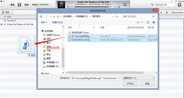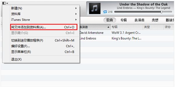 這個(gè)很簡(jiǎn)單,點(diǎn)擊左上角的功能按鈕,選擇“將文件添加到資料庫(kù)”,這樣就打開(kāi)了文件管理器。然后將選擇的音樂(lè)直接拖到iTunes里就可以了,非常的簡(jiǎn)單。