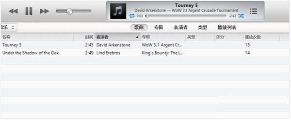 播放中的音樂(lè)會(huì)顯示在頂部正中的窗口中,會(huì)有明顯的播放按鈕和播放條。播放條的左邊是循環(huán)播放的按鈕,包括不循環(huán)、單曲循環(huán)和整個(gè)列表循環(huán),右側(cè)則是“隨機(jī)播放”的開(kāi)關(guān)。