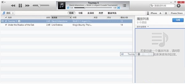 此外也可以直接將電腦中的音樂(lè)文件拖拽到iTunes右側(cè)的窗口中,音樂(lè)會(huì)全部復(fù)制到iPhone中。
