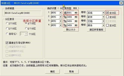 Diskgenius DOS版快速分區(qū)警告: