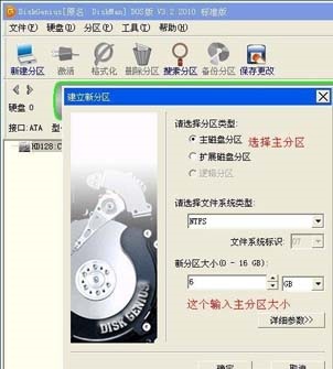 上圖首先需要選擇創(chuàng)建主磁盤分區(qū),選擇文件系統(tǒng)類型,并輸入主分區(qū)大?。ㄗ⒁夂竺娴膯挝唬?,然后點(diǎn)擊確定即可完成主分區(qū)創(chuàng)建,如下圖: