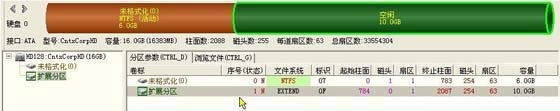 從上圖可以看出,天緣演示的磁盤是個(gè)空白盤,如果您的硬盤是新買來的未經(jīng)過分區(qū),看起來就是上面的樣子