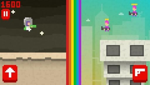 1、像素風(fēng)格的無盡跑酷射擊游戲;2、使用不同的角色專有武器;