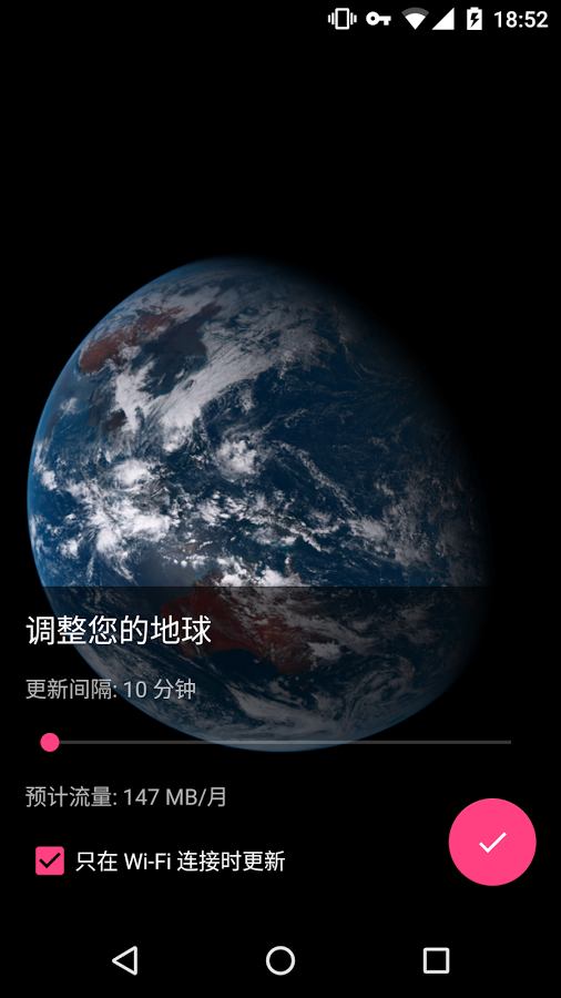 或是設(shè)定只在連接WiFi才更新避免流量爆增,設(shè)定完成桌布就會隨著時間一點(diǎn)一點(diǎn)的變化。
