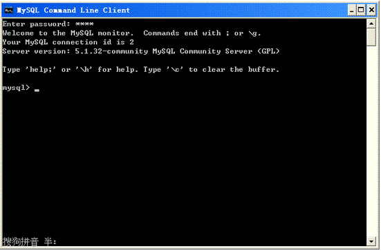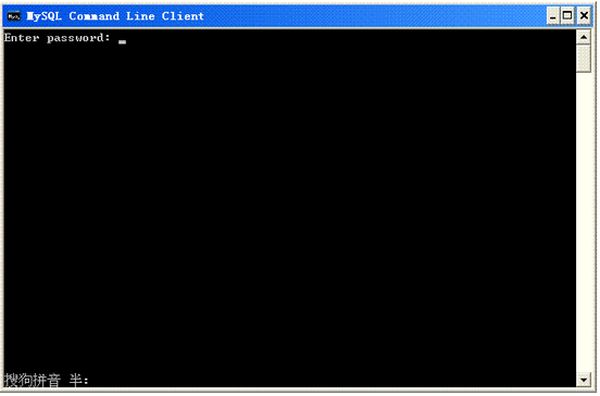 單擊開始->所有程序->MySQL->MySQL service 5.1->MySQL Command line Client出現(xiàn)如下界面