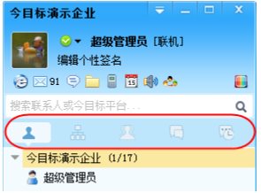 聯(lián)系人分為在線用戶、組織結(jié)構(gòu)、友好企業(yè)、自定義組和最近聯(lián)系人。