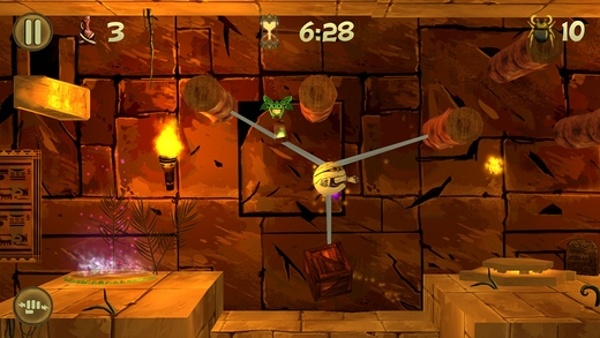 玩家需要控制木乃伊國王,利用自己身上無盡的繃帶來纏繞古墓內(nèi)無盡的支點從而得以逃生,玩起來既有益智解謎的趣味,也有《憤怒的小鳥》般的彈射爽快,總之玩法非常豐富。