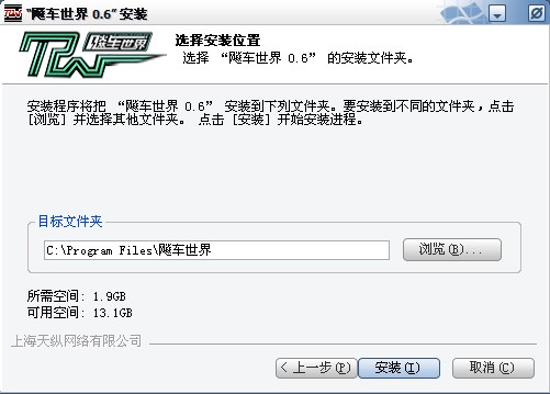 指定要安裝《飚車世界》的目標(biāo)位置。默認(rèn)設(shè)置為 C:\Program Files\飚車世界,如果想另外指定,則點(diǎn)擊 “ 瀏覽 ” 進(jìn)行新的指定。