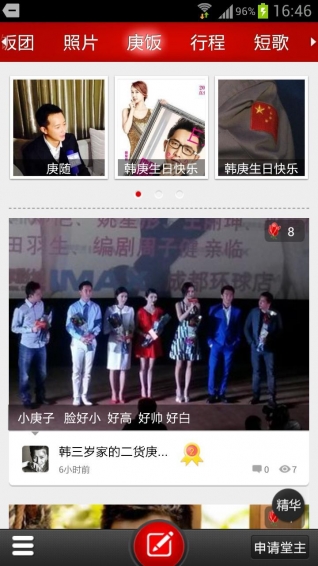 飯團韓庚app,專業(yè)的追星應用。用飯團韓庚app,隨時查看韓庚最新動態(tài),和喜愛韓庚的粉絲一起聊天,打榜,接機,找到志趣相同的好朋友。【軟件特點】