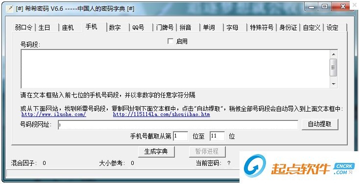 希希密碼是一款極具中國特色的字典生成器,因?yàn)檫@是一款專門針對國人的姓名、手機(jī)號等密碼習(xí)慣而開發(fā)的字典生成器。V6.6極速版,字典生成速度極快,每秒可生成40萬條記錄。希希密碼是進(jìn)行安全研究的一大神器。