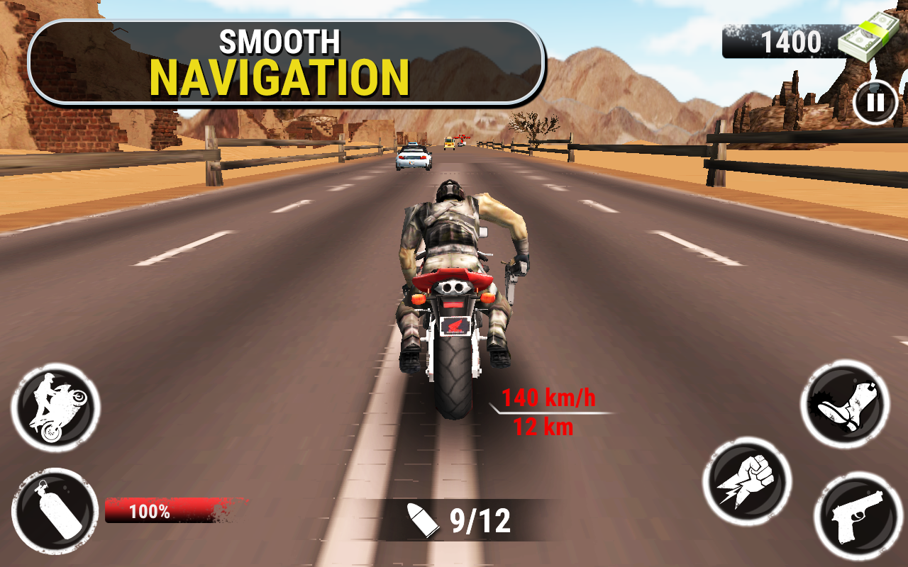 公路特技自行車(chē)騎手是一個(gè)快節(jié)奏的自行車(chē)賽車(chē)游戲。在其中,你是大膽的和密切來(lái)往的汽車(chē),并通過(guò)提高速度得到分?jǐn)?shù)特技制作與你的摩托車(chē)。小心你的操縱雖然,撞毀的汽車(chē)將受到傷害!你從來(lái)不敢開(kāi)車(chē)在現(xiàn)實(shí)世界如此之快!在交通高峰時(shí)間控制你的摩托車(chē)以令人難以置信的速度快!點(diǎn)擊渦輪增壓來(lái)提高你的自行車(chē)速度。
