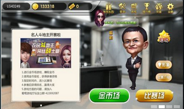 《名人斗地主TV版》,屌絲變富豪。如今各行各業(yè)的名人,他們風(fēng)光閃耀、壕氣無限,羨煞旁人。但是他們當(dāng)年經(jīng)歷過艱辛和努力,也是由屌絲蛻變而成。名人斗地主就是這樣一款游戲,你可以選擇一位名人,扮演窮困潦倒的農(nóng)民,或者扮演珠光寶氣的地主,進(jìn)行一場身份轉(zhuǎn)換大亂斗,體驗別有一番風(fēng)味的斗地主游戲。【操作方法】
