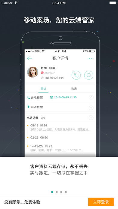 1、通過(guò)樓市小秘書可與客戶進(jìn)行在線咨詢、交流,引導(dǎo)意向客戶轉(zhuǎn)化為成交客戶。2、管理自己的客戶資源,根據(jù)客戶的購(gòu)房意向強(qiáng)弱度實(shí)時(shí)跟蹤,篩選出精準(zhǔn)客戶進(jìn)行有效營(yíng)銷。