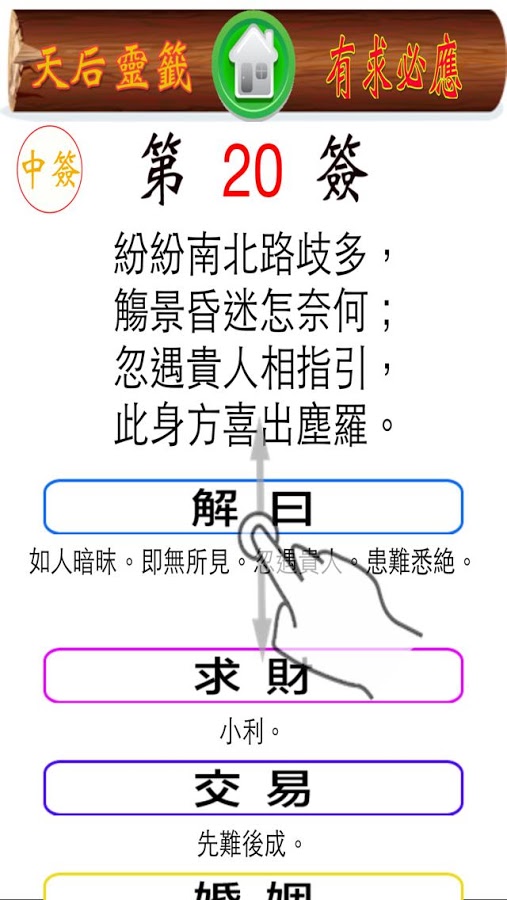 此簽簽整整一百零三支,很全面的解韱分:上簽,中簽,下簽。
