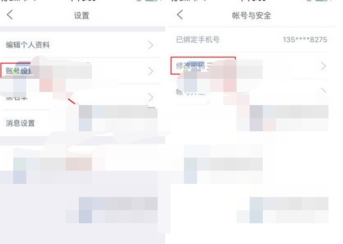 2)然后點(diǎn)擊【賬號(hào)設(shè)置】,接著再點(diǎn)擊【修改密碼】。(如下圖)