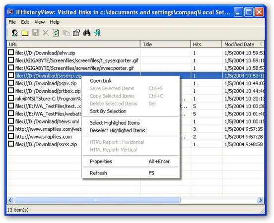 IEHistoryView(瀏覽歷史管理) V1.62 英文綠色免費(fèi)版 IEHistoryView是一款幫助使用者查看和管理網(wǎng)頁(yè)瀏覽歷史的小工具。該軟件能夠讓使用者隨意刪除任一筆歷史紀(jì)錄,并且還提供了數(shù)據(jù)匯出的功能,讓使用者能夠完全掌控網(wǎng)頁(yè)的瀏覽歷史。