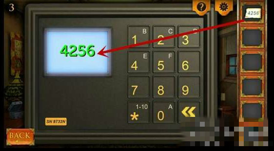 用鑰匙打開右邊的箱子,獲得一張紙,紙上寫著4256(應(yīng)該是個(gè)密碼)。