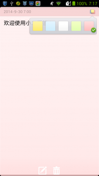 1、新增、刪除便簽。2、有五種顏色選擇,方便區(qū)分每條便簽消息,一目了然。